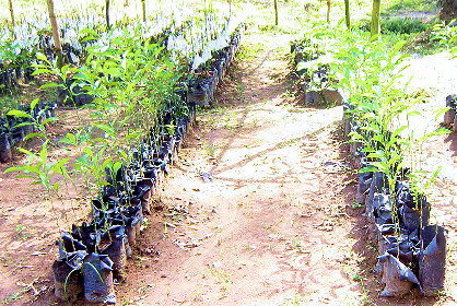 wird und gibt den "kleinen Leuten", die Großes leisten eine Chance. Das Foto zeigt Gavin's erfolgreiche Aufzucht von Lenké Baum-Sämlingen Afzelia africana im Jahr 2009.